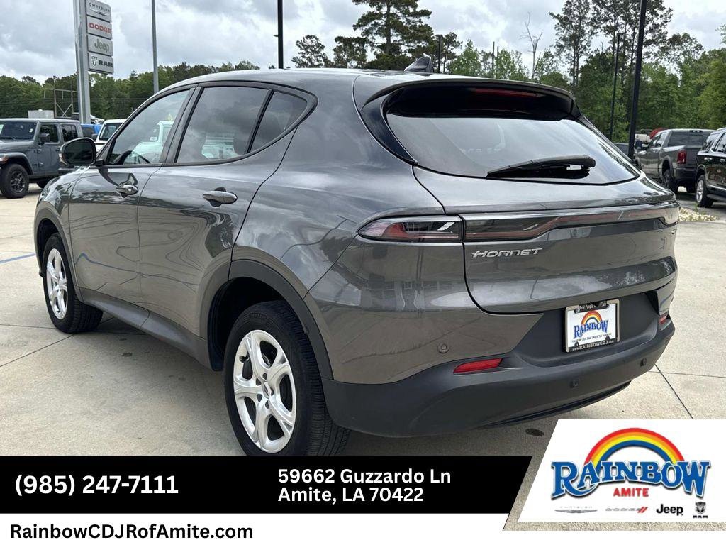 This 2024 Dodge Hornet has auto-adjust speed for safe following. The Dodge Hornet is equipped with all wheel drive. The vehicle offers Android Auto for seamless smartphone integration. It offers Apple CarPlay for seamless connectivity. The high efficiency automatic transmission shifts smoothly and allows you to relax while driving. Protect this model from unwanted accidents with a cutting edge backup camera system. Good News! This certified CARFAX 1-owner vehicle has only had one owner before you. The Dodge Hornet has a clean CARFAX vehicle history report. Maintaining a stable interior temperature in it is easy with the climate control system. The vehicle features cruise control for long trips. Electronic Stability Control is one of many advanced safety features on this model. This Dodge Hornet has a 4 Cyl, 2.0L high output engine. It's Forward Collision Warning feature alerts drivers to potential front-end collisions. Enjoy the tried and true gasoline engine in this Dodge Hornet. This model emanates grace with its stylish gray exterior. Bluetooth technology is built into this model, keeping your hands on the steering wheel and your focus on the road. The leather seats in this unit are a must for buyers looking for comfort, durability, and style. This mid-sized SUV is perfect for your next adventure. The rear parking assist technology on this unit will put you at ease when reversing. The system alerts you as you get closer to an obstruction.