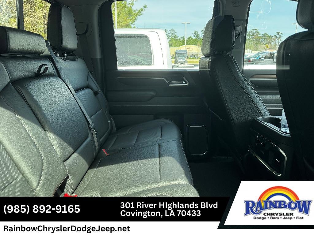 Denali Reserve Package: Power Sunroof; Technology Package. Preferred Equipment Group 5SA: LED Cargo Area Lighting; Trailer Side Blind Zone Alert; SiriusXM with 360L; Remote Vehicle Starter System; Power Sliding Rear Window with Defogger; Safety Alert Seat; Ultrasonic Front and Rear Park Assist; Trailer Cam Provisions and Trailer Viewing Software; Electric Rear-Window Defogger; Floor-Mounted Center Console; Signature Chrome Denali Grille; Unauthorized Entry Theft-Deterrent System; Bed View Camera with Two Trailer Camera Provisions; Front Rain-Sensing Wipers; Sierra HD Pro Safety; Wireless Phone Projection; 2 USB Ports; Rear Cross Traffic Alert; 120-Volt Instrument Panel Power Outlet; 2 Charge/data USB Ports Inside Center Console; LED Smoked Amber Roof Marker Lamps; Heated Driver and Front Outboard Passenger Seats; Wireless Charging; X31 Off-Road Package; Steering Wheel Audio Controls; 2 Charge-Only Rear USB Ports; GMC Connected Access Capable; Universal Home Remote; OnStar and GMC Connected Services Capable; 120-Volt Bed Mounted Power Outlet; Heated 2nd Row Outboard Seats; Power Front Passenger Windows with Express Up/down; Bose Premium 7-Speaker Sound System; 2-Speed Active Transfer Case; Deep-Tinted Glass; Spray-On Bedliner with Denali Logo; Integrated Trailer Brake Controller; HD Surround Vision; Ventilated Driver and Front Passenger Seats; Manual Tilt-Wheel/telescoping Steering Column; Keyless Open and Start; ProGrade Trailering System; Push Button Start; Rear Wheelhouse Liners; Polished Exhaust Tip. Technology Package. Power-Retractable Assist Steps. White Frost Tricoat. Power Sunroof. Body Color Wheel Arch Moldings. Gooseneck/5th Wheel Prep Package. Rear Underseat Storage. **Equipment listed is based on original vehicle build and subject to change. Please confirm the accuracy of the included equipment by calling the dealer prior to purchase.**